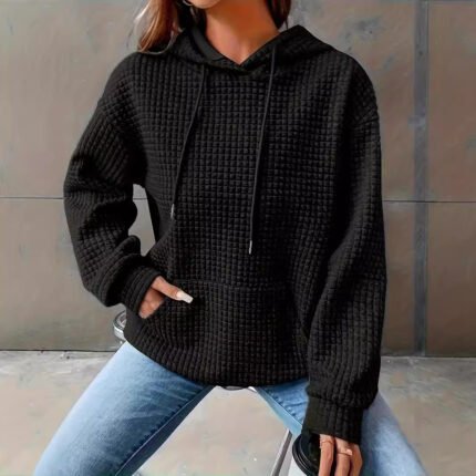 Fall Winter Solid Color Hooded Drawstring Long Sleeve Women Sweatshirt Loose