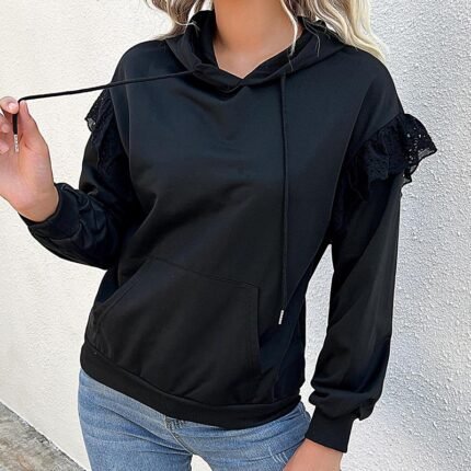 Autumn Winter Women Clothing Long Sleeve Solid Color Hooded Sweatshirt Women