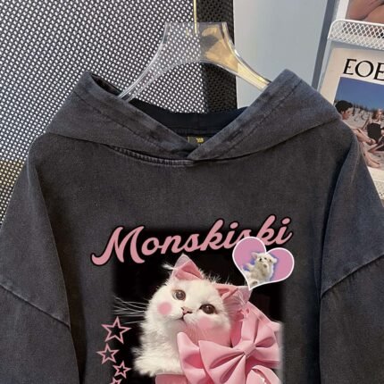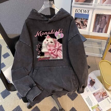 Fall Loose Casual Washing Water Denim Stitching Hooded Women Sweatshirt