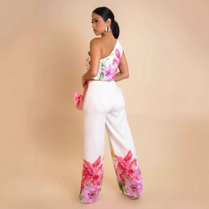 Style: Sexy Fit: Slim Fabric: Polyester Pattern: Floral Element: Asymmetric Neckline: One Shoulder Sleeve Type: Others Sleeve Length: Sleeveless Rise: