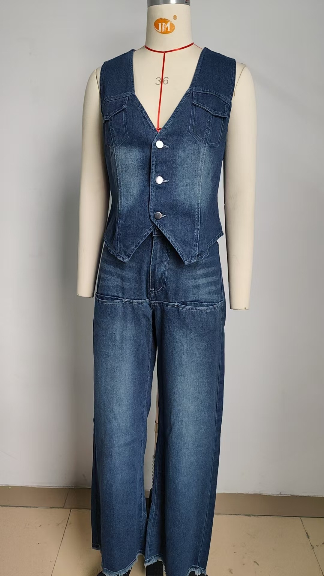 Be the first to review “Autumn Washed Denim Waistcoat Vest Slimming Denim Pants Two Piece Set” Cancel reply