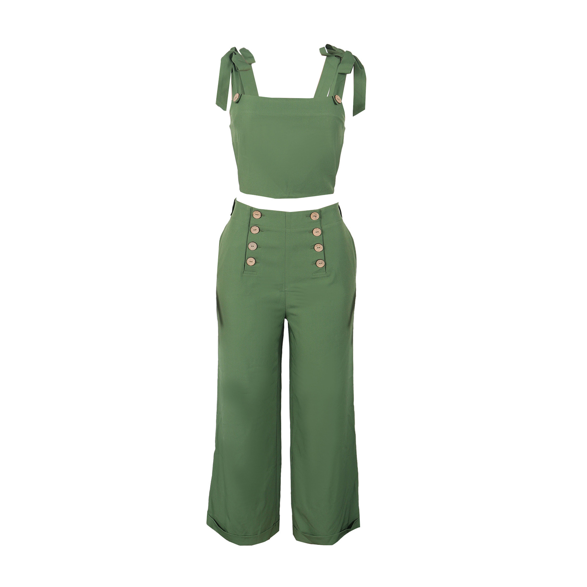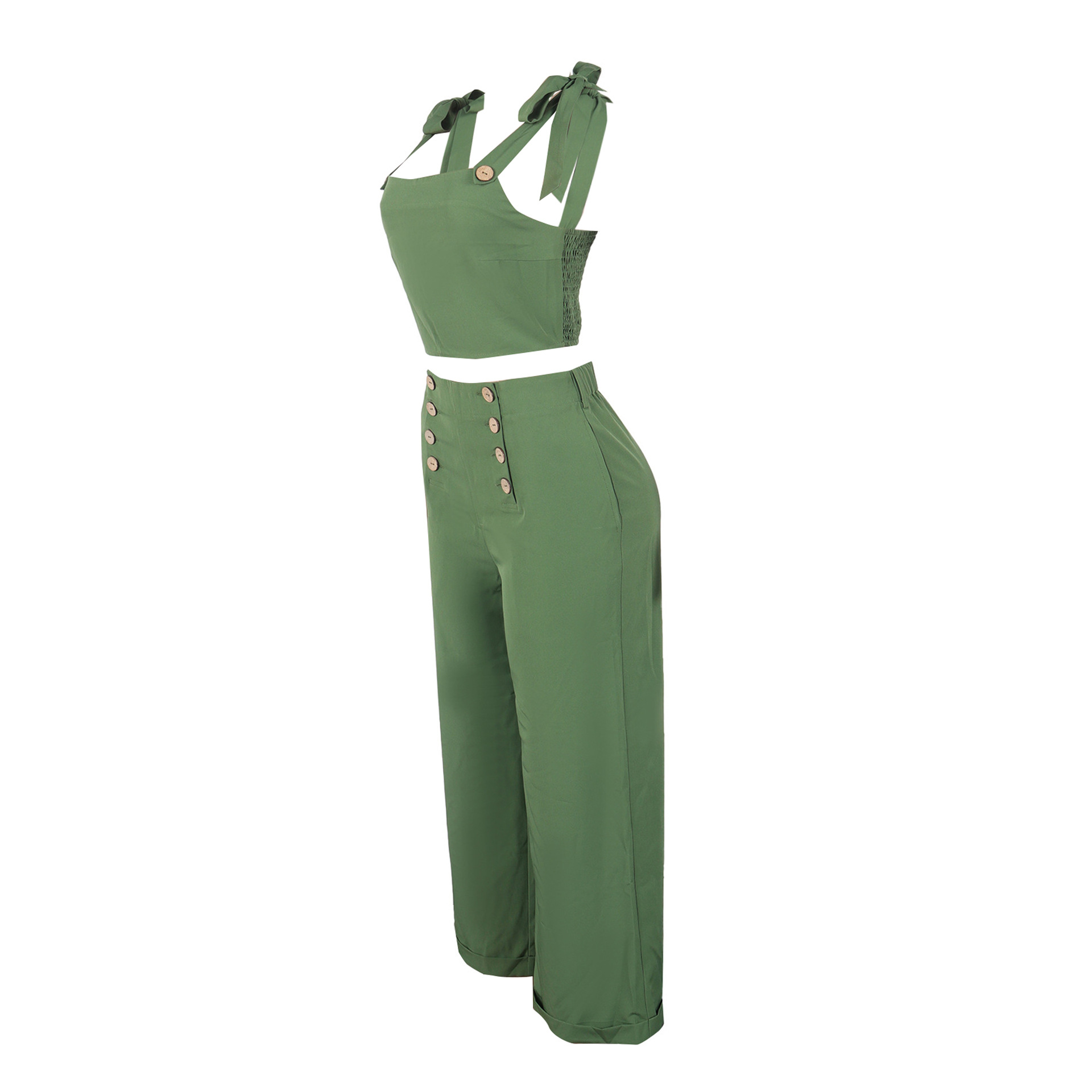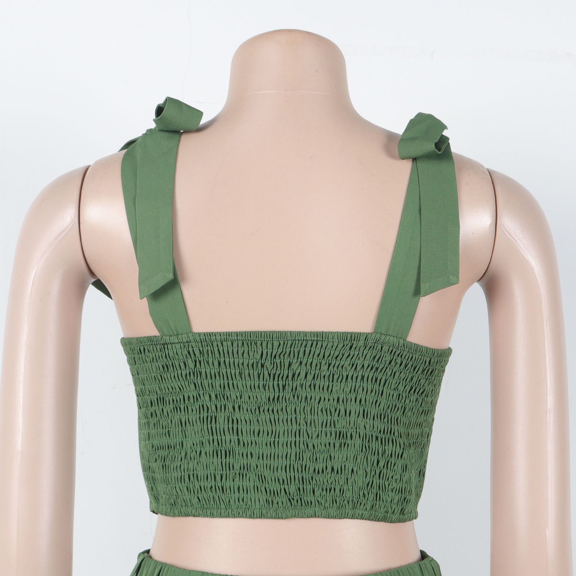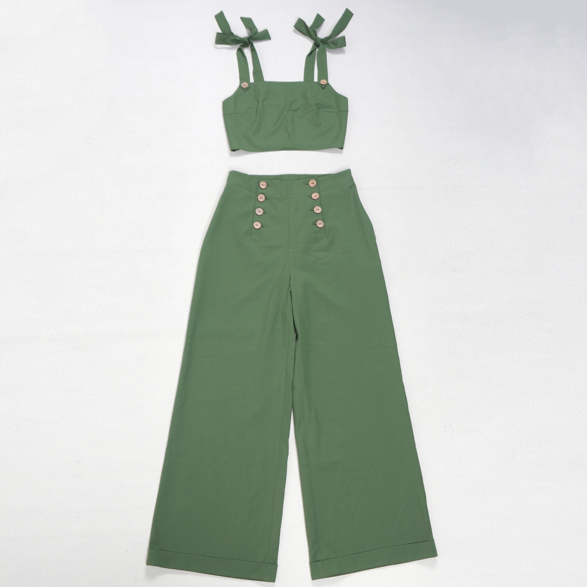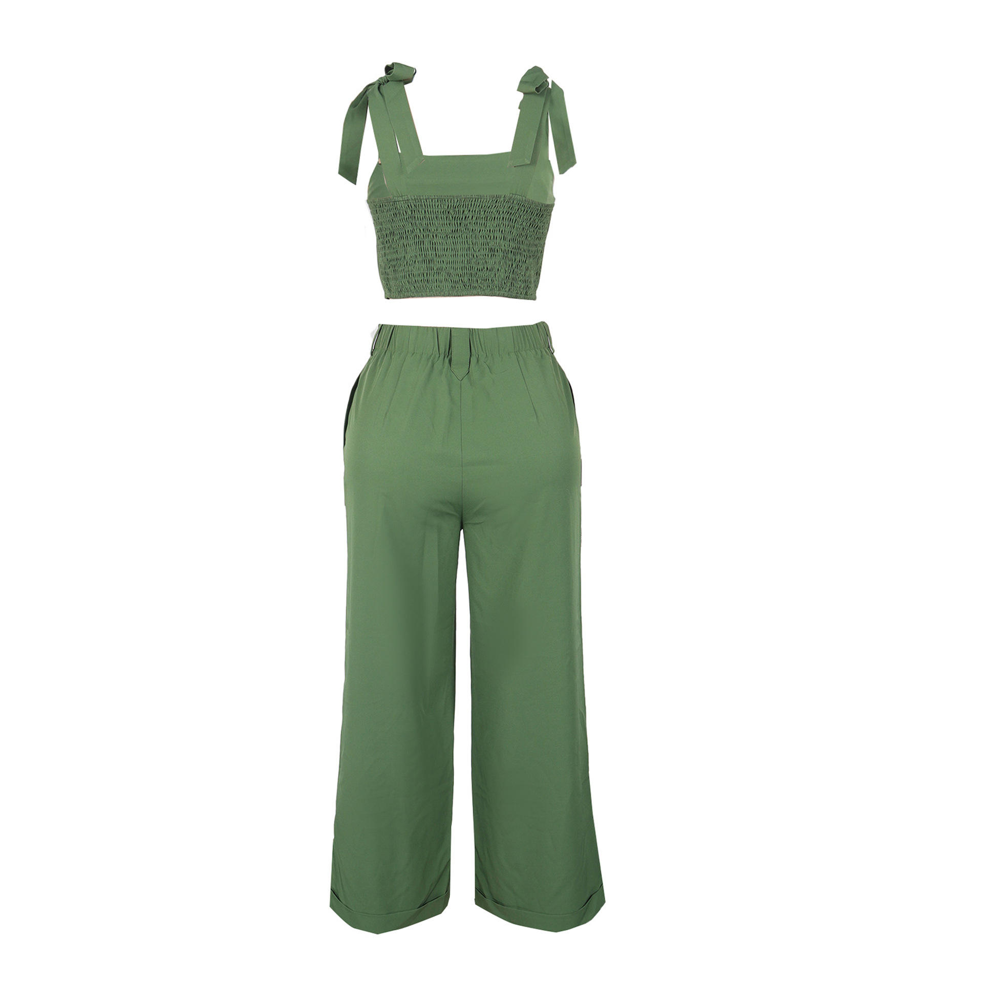 Home Shop Women Elegant Office Strap Smocking Slim Fit Wide Legged Pants Two Piece Set